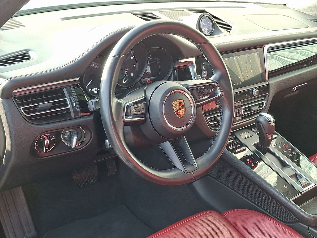 Stepping inside the Macan Base, you'll be greeted by a meticulously crafted interior that seamlessly blends premium materials and cutting-edge technology. The 8-Way Power Seats, Leather-Wrapped Steering Wheel, and Partial Leather Seat Trim with Sport-Tex create an inviting and luxurious environment, while the Apple CarPlay and Android Auto integration keep you connected and in control.