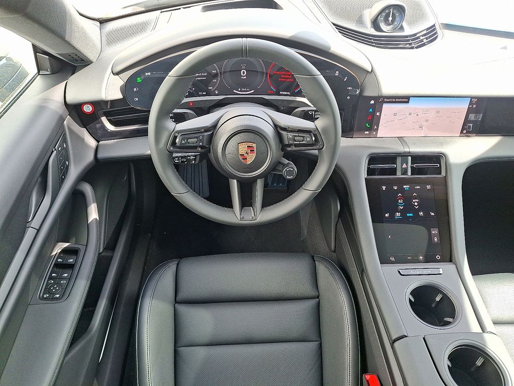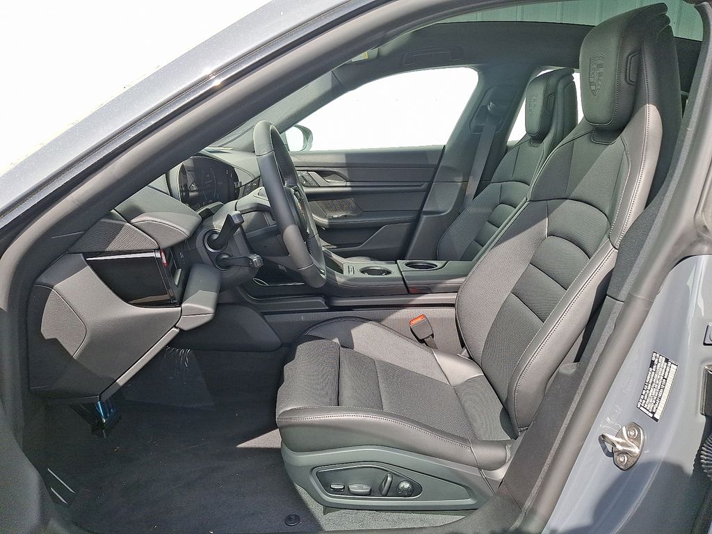 Inside, the Taycan 4s cabin perfectly merges advanced technology with Porsche craftsmanship. The Black interior offers a minimalist, driver-focused environment accented by Interior Trim in Black and Porsche Crests on the Front and Rear Headrests.