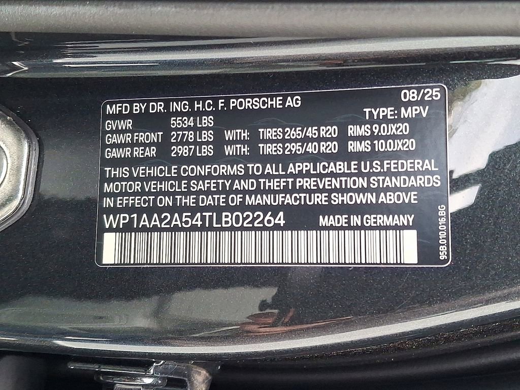The PORSCHE logo in Satin Black and the painted rear model designation emphasize a sleek, performance-focused aesthetic, while Side Blades in Exterior Color enhance the SUVs athletic silhouette. Finishing touches like the Sport Tailpipes in Silver and Clear LED Taillights showcase Porsches precision design and attention to every detail.