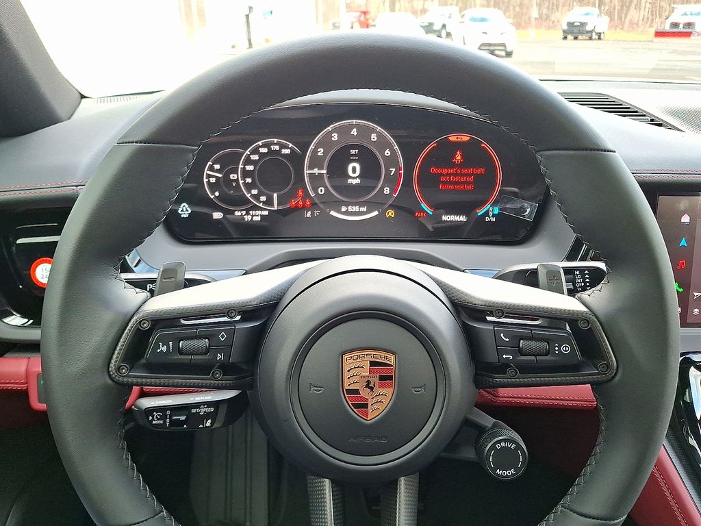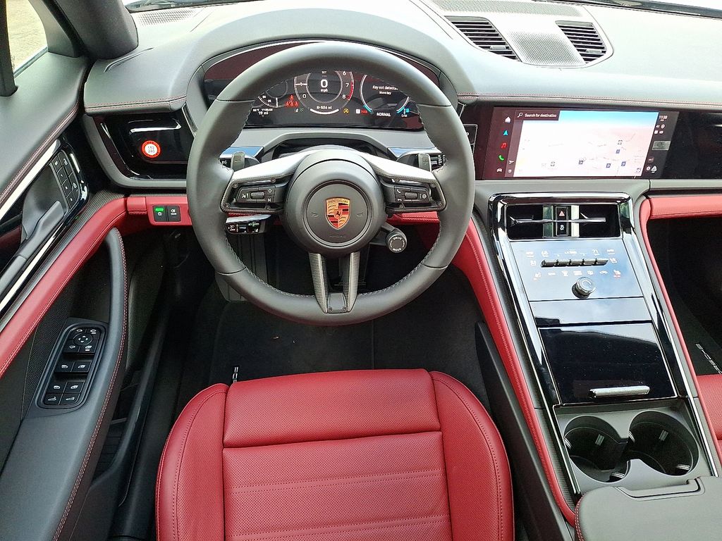Step inside, and the Panamera 4 surrounds you with sophistication and craftsmanship. The Leather Interior in Black/Bordeaux Red creates a bold, elegant contrast, while Matte Carbon Fiber Trim adds a motorsport-inspired edge. The Heated GT Sport Steering Wheel with Carbon Fiber Trim provides both luxury and tactile precision.